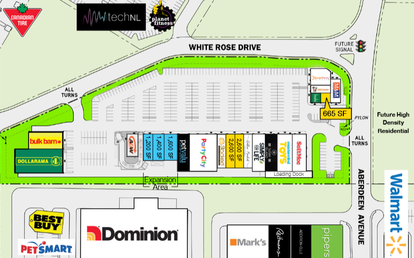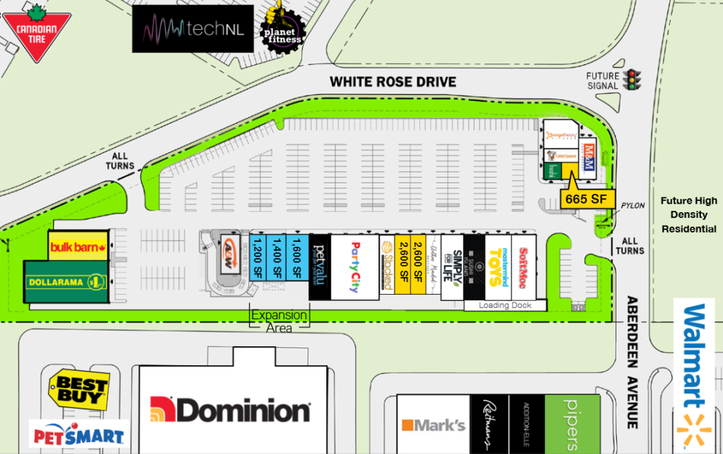 - Extensive frontage on Aberdeen Avenue and White Rose Drive with excellent visibility from Walmart, just west of Canadian Tire on Torbay Road.